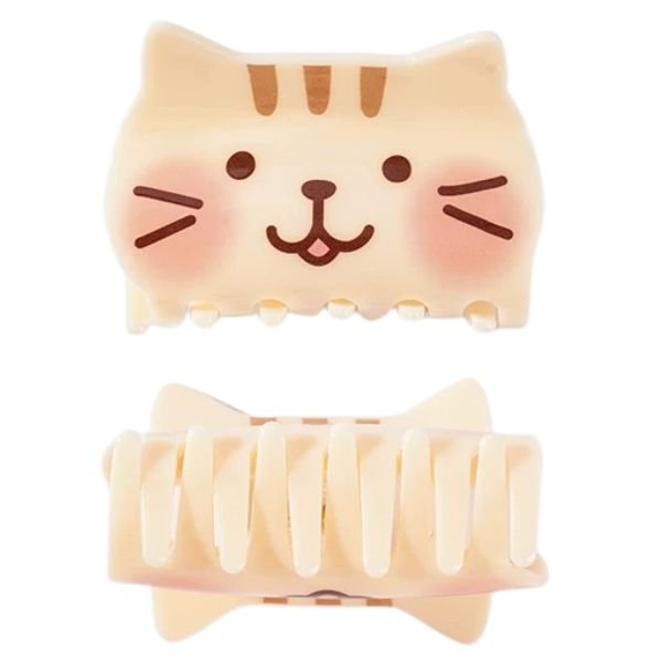 FukuFukuNyanko貓頭皮質髮夾兩支裝(奶酪牛奶)5×4.5cm