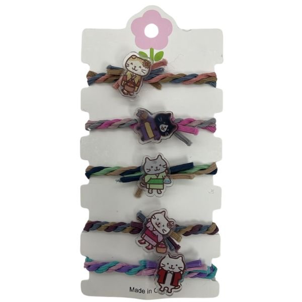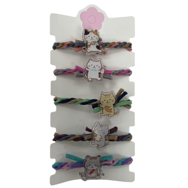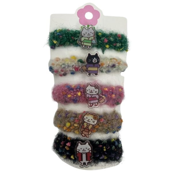 髮繩富酷貓圈圈絨五條裝髮繩(日常貓)